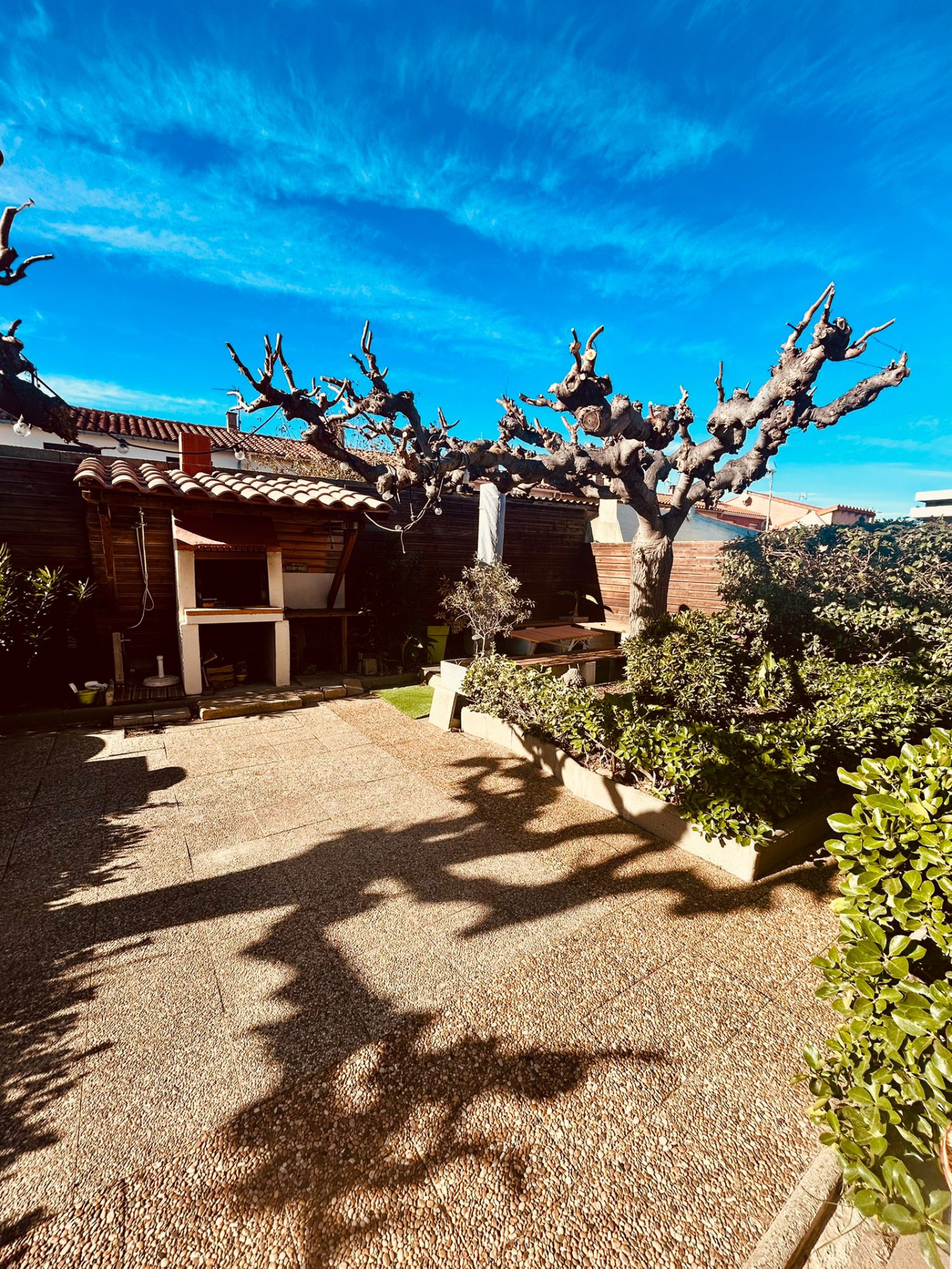 LOCATION de Vacances Le Barcarès quartier du Village à 200 mètres de la plage soit 3 minutes à pieds ! Charmante maison 4 faces typique barcarèsienne de plain pied à louer située entre le village et le port, idéale pour des vacances en famille ou entre amis. Cette villa confortable et accueillante d'env 80 m² habitables dispose de 3 chambres pouvant accueillir jusqu’à 8 personnes. Une chambre équipée d’un lit double pour 2 personnes et d’un lit superposé (2x90 cm), une chambre disposant d’un lit gigogne (2x90 cm) et d’un canapé-lit pour 2 personnes, et une 3ème chambre comprenant un lit double pour 2 personnes. Le salon-séjour lumineux et confortable est parfait pour se détendre. La cuisine séparée est entièrement équipée avec notamment un lave-vaisselle. La villa dispose également d’une salle d’eau avec machine à laver et d’un WC séparé, à l’extérieur un joli jardin entoure la villa avec un coin barbecue pour profiter des repas en plein air, l’espace extérieur est ombragé et dispose de l’eau et de l’électricité, idéal pour se détendre ou organiser des repas conviviaux en extérieur, cette villa vous offre un cadre idéal pour vos vacances, alliant confort et tranquillité tout en étant à proximité des commodités et des plages. Marché local et tous commerces à pied !