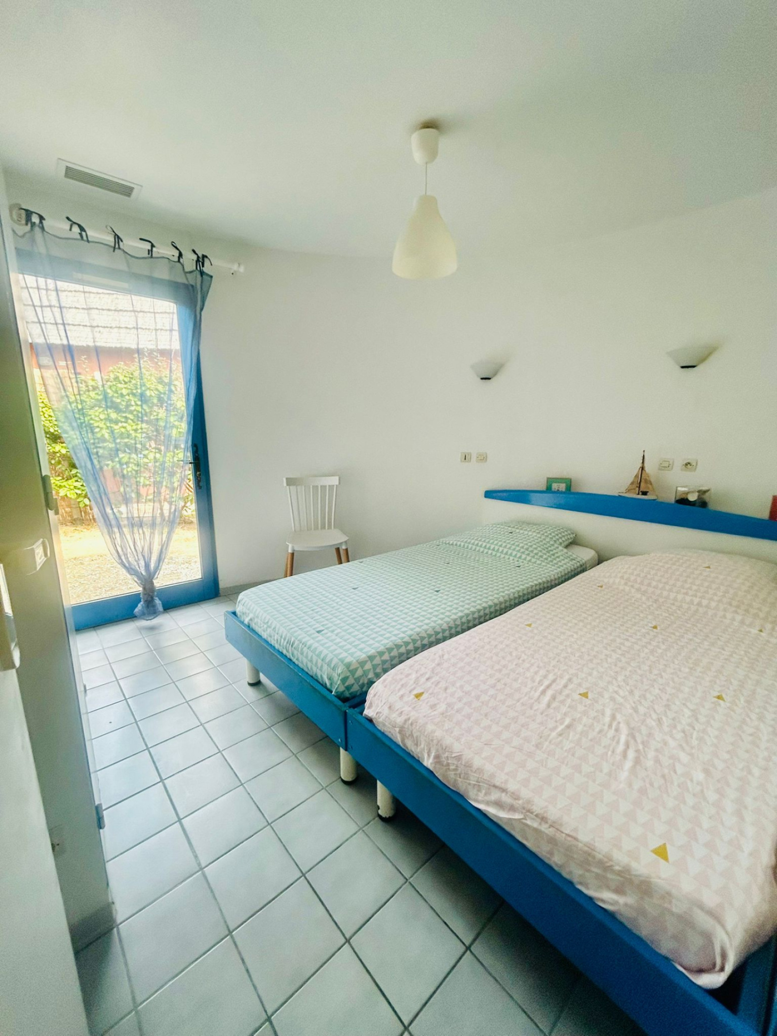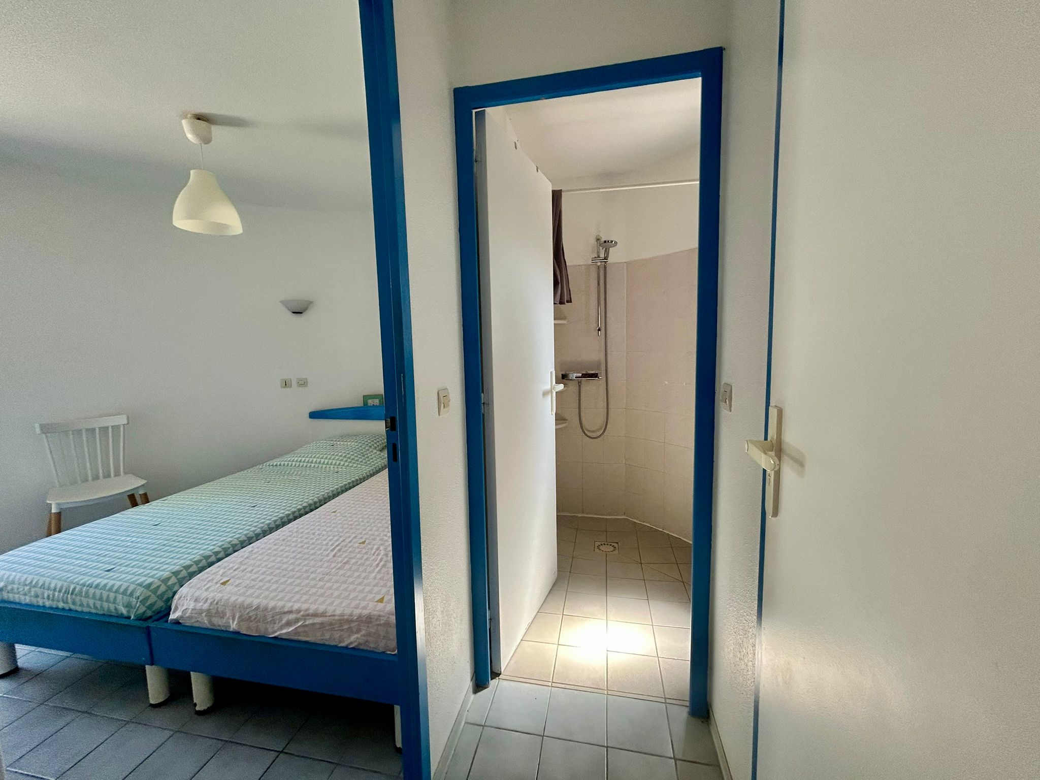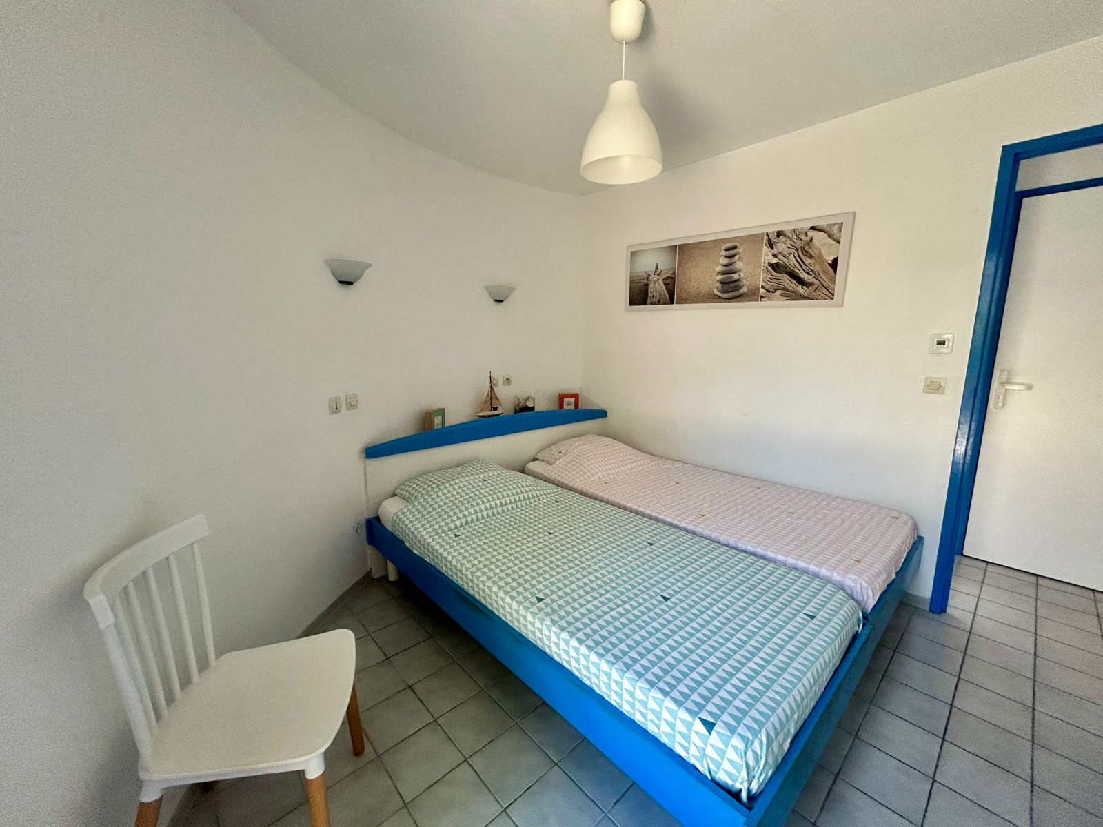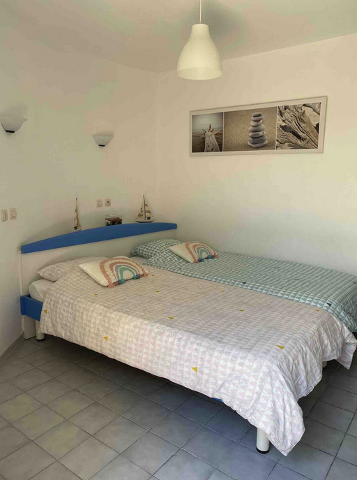 - Une chambre avec deux lits simples et placards.