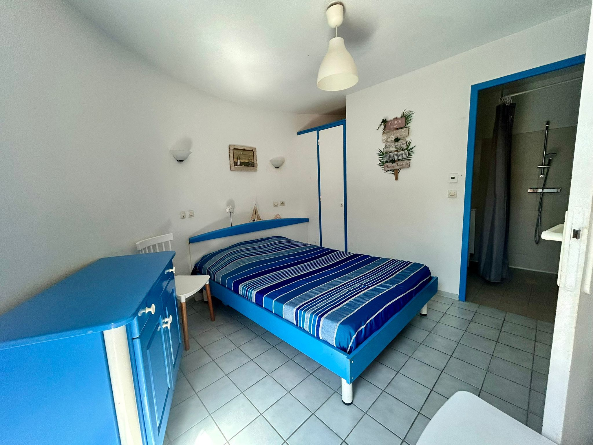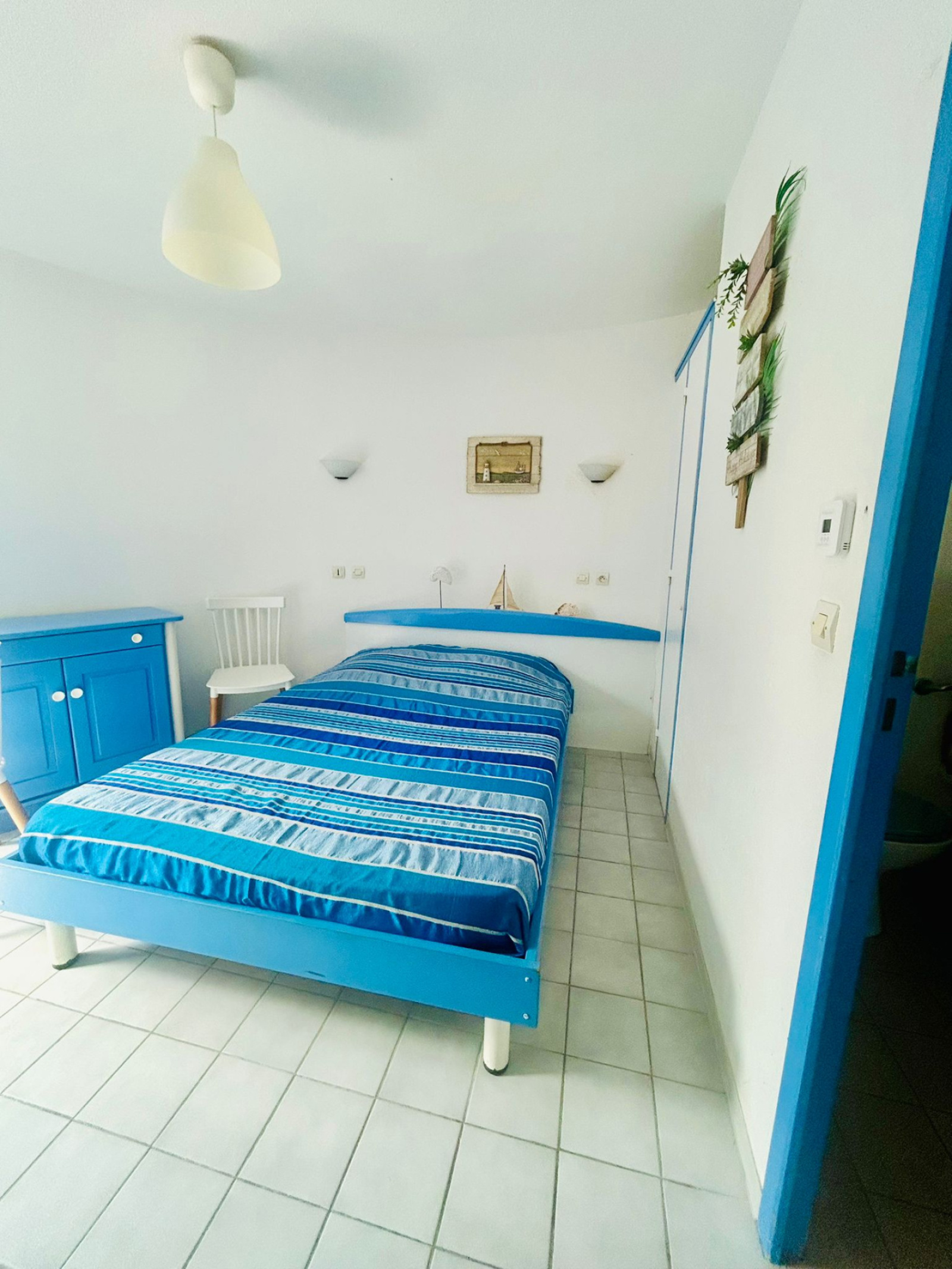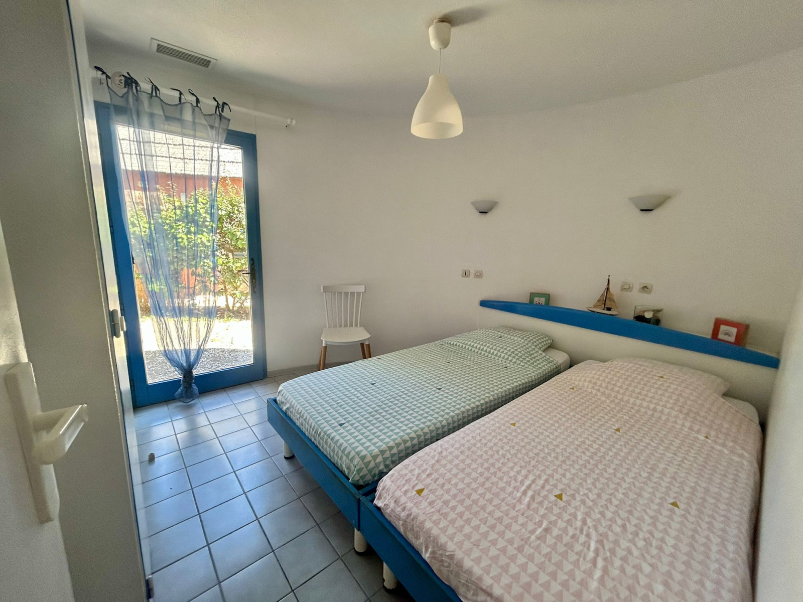 - Une chambre avec deux lits simples et placards.