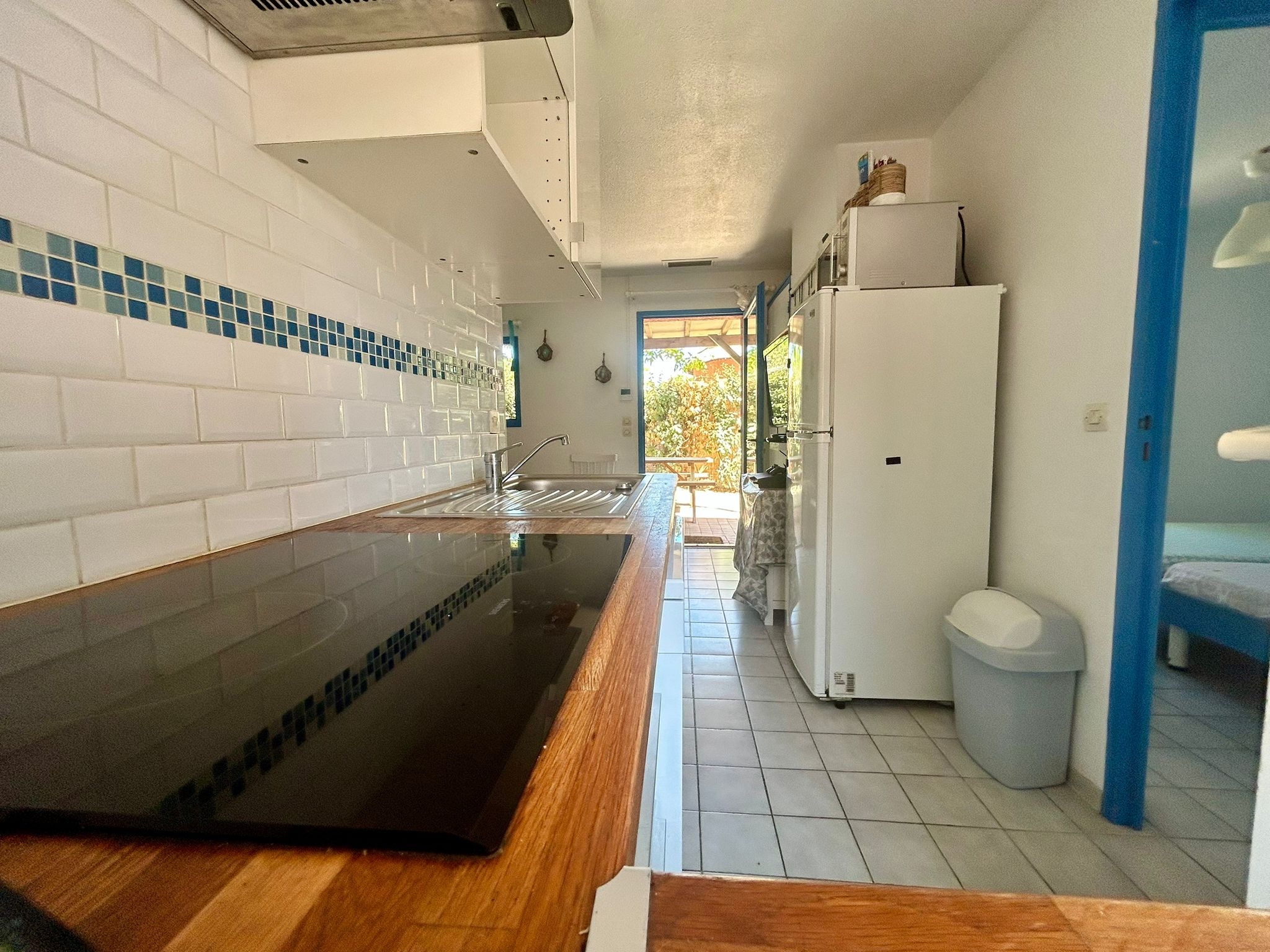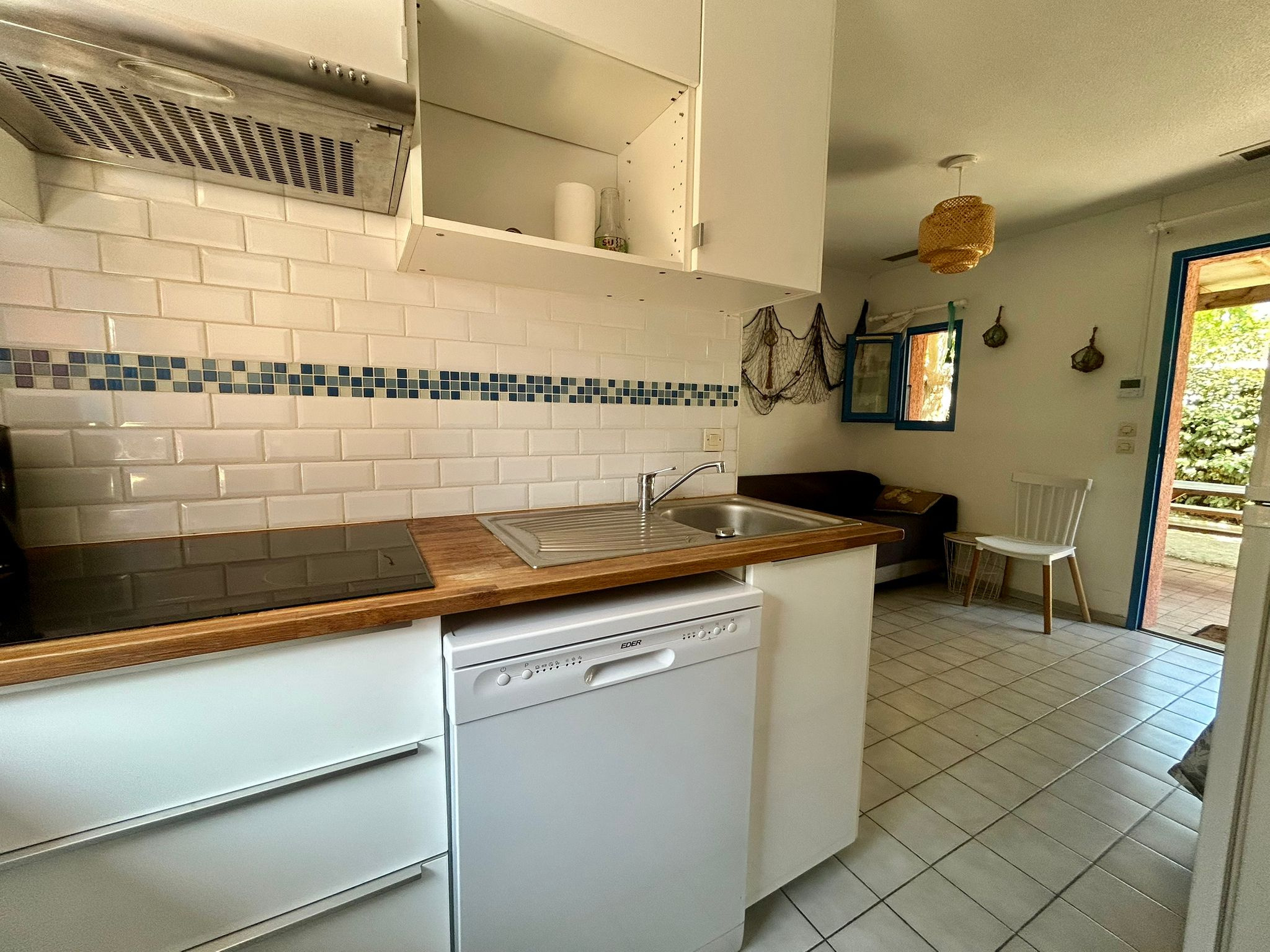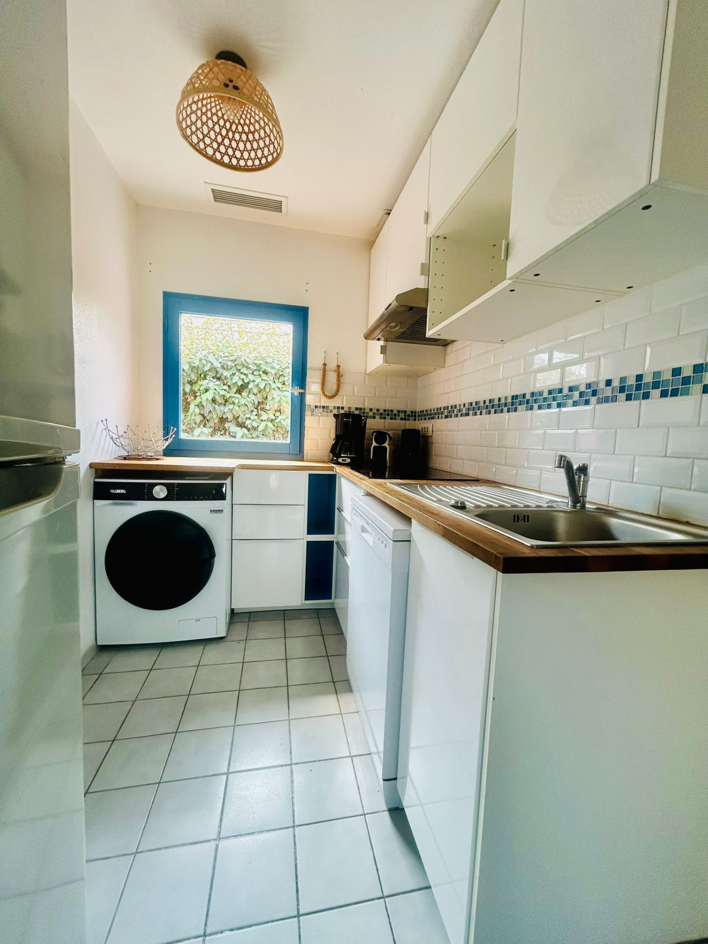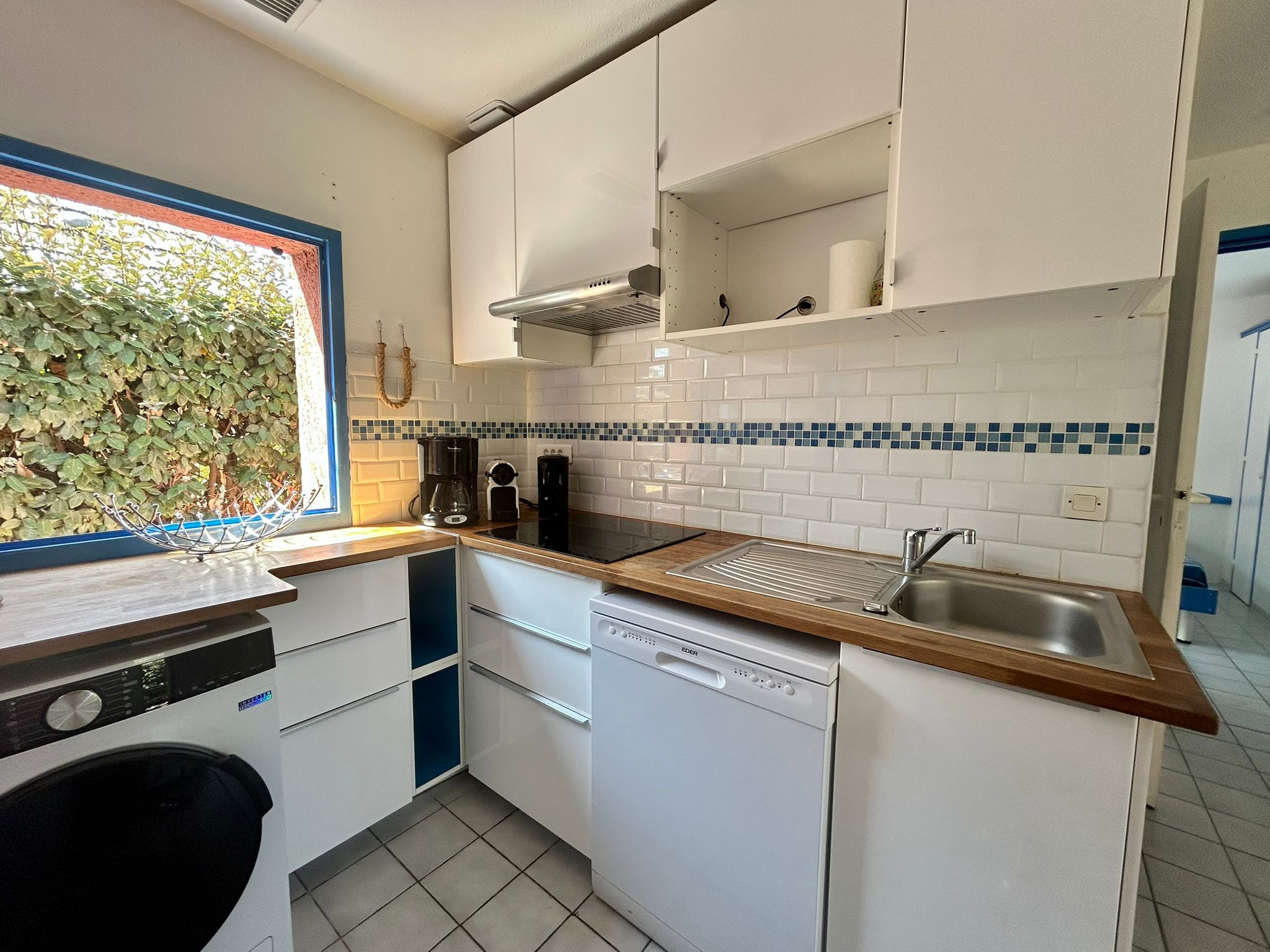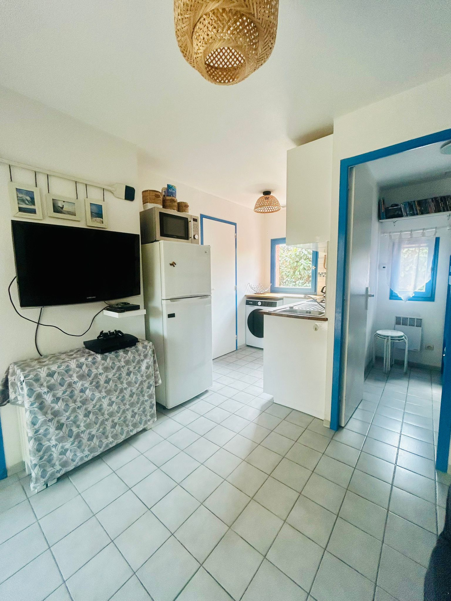 - Salon/séjour lumineux avec cuisine ouverte entièrement équipée (grand frigo-congélateur, lave-vaisselle, lave-linge, plaque induction, cafetière expresso, TV, etc.).