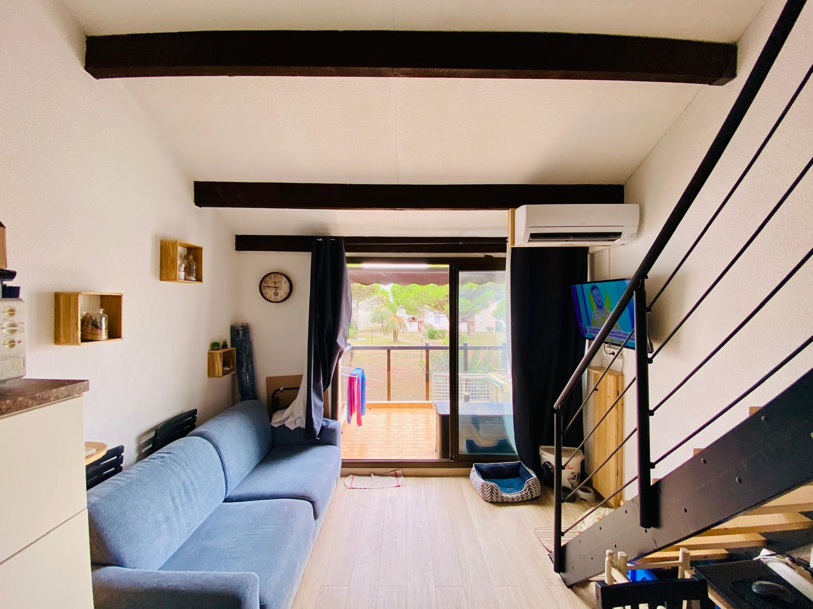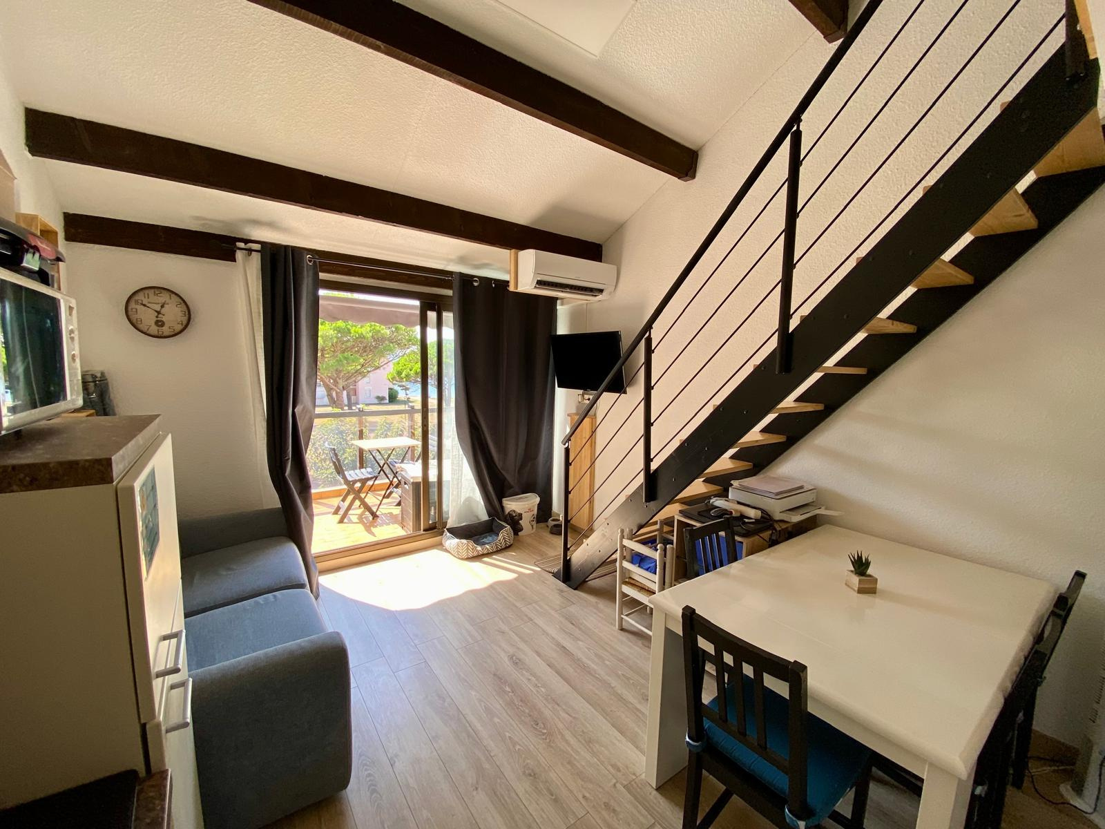 SOUS COMPROMIS Le Barcarès Cap Coudalère ! Découvrez cet agréable logement calme et élégant situé au 2ème et dernier étage (sans ascenseur) quartier de la Coudalère. Proche de toutes les activités et des animations, vous n’aurez pas besoin de voiture pour vous déplacer sur place. Parking libre sur place. 3 km du Célèbre Festival DEFERLANTES soit 7 minutes en voiture. Un complexe aquatique (composé de deux piscines et d’un espace de jeux d’eau) vous permettra de vous rafraîchir. Il se compose d'une séjour avec climatisation cuisine US avec une jolie chambre donnant sur une agréable terrasse de 5m² avec vue sur le lac, salle d'eau wc. La mezzanine de 10m² permettra d'accuellir des couchages supplémentaires soit une capacité totale de 6 à 8 personnes, ce qui en fait un produit locatif idéal en location saisonnière ! Décoration épurée. Logement agréable, fonctionnel, avec de nombreux équipements.Vous êtes propriétaire d'un logement sur le Barcarès ou le littoral du 66 ou de l'Aude ? N'hésitez pas à nous contacter pour un devis gratuit, formules à la carte pour vous accompagner en toute confiance et sécurité dans la mise en location ou la vente de de votre bien !